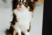 日本狆是极小型犬;被毛长而丰厚,不弯曲;毛色为白色底,带黑色或栗色斑块,斑块颜色越艳越好;斑块以在耳、身、面、尾根左右对称者为佳;头较大而圆,头骨平坦;吻短,鼻尖缩至两眼之间,几乎与眼同齐;眼大而凸出,…全部>>