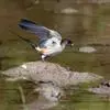 金腰燕:体长16-18厘米,体重18-21克,寿命15年。上体黑色,具有辉蓝色光泽,腰部栗色,脸颊部棕色,下体棕白色,而多具有黑色的细纵纹,尾甚长,为深凹形。最显著的标志是有一条栗黄色的腰带,…全部>>