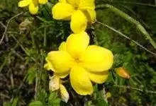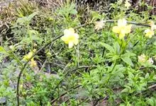迎春花,木犀科素馨属的多年生木本植物,小枝细长直立或者呈拱形下垂;叶片呈卵形或椭圆形;花单生于叶腋处,苞片呈披针形或椭圆形,花冠为金黄色,花瓣通常为倒卵形或椭圆形;花期在6月。…全部>>