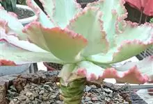 女王花笠,又名扇贝石莲花、女王花舞笠,是景天科拟石莲花属的多肉植物。由美国加利福尼亚州的育种师Dick Wright于1964年培育。特征是呈大波浪状褶皱的红色叶缘和气质高贵的粉紫色调。…全部>>