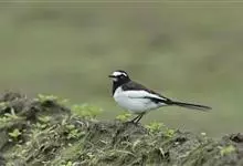 日本鹡鸰:体长约20厘米。上体多黑色,额、颏及眉纹白,下体白,两翼黑而具白色横斑及羽缘,尾黑而边缘白色。虹膜深褐色;嘴黑色;脚黑色。飞行时发出嘁喳声,具复杂而独特的鸣声。喜农田、稻田和溪流。…全部>>
