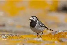 日本鹡鸰:体长约20厘米。上体多黑色,额、颏及眉纹白,下体白,两翼黑而具白色横斑及羽缘,尾黑而边缘白色。虹膜深褐色;嘴黑色;脚黑色。飞行时发出嘁喳声,具复杂而独特的鸣声。喜农田、稻田和溪流。…全部>>