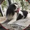 日本狆是极小型犬;被毛长而丰厚,不弯曲;毛色为白色底,带黑色或栗色斑块,斑块颜色越艳越好;斑块以在耳、身、面、尾根左右对称者为佳;头较大而圆,头骨平坦;吻短,鼻尖缩至两眼之间,几乎与眼同齐;眼大而凸出,…全部>>