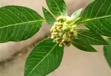 猩猩草:常绿或半常绿灌木,盆栽时株高0.5米-2米,在亚热带地区可长到6米以上。茎直立而光滑,单叶互生,卵状椭圆形至阔披针形,具不规则的深缺刻。长10-15厘米。花小,有蜜腺,排列成密集的伞房花序。…全部>>