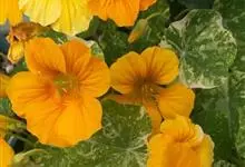 旱金莲是旱金莲科旱金莲属蔓生一年生草本植物。叶互生,叶柄向上扭曲,盾状,叶圆形,具波状浅缺刻,下面疏被毛或有乳点;花黄、紫、桔红或杂色,花托杯状,花瓣为圆形,边缘具缺刻;果实为扁球形;花果期6-10月,…全部>>