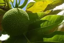 面包树 Fosberg)是桑科波罗蜜属植物。叶大,成熟之叶羽状分裂,表面深绿色,背面浅绿色;穗状花序单生叶腋,雄花序长圆筒形至长椭圆形或棒状;聚花果倒卵圆形或近球形;花期为3~5月,果期为7~10月。…全部>>