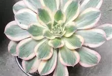 红缘莲花掌属蔷薇目、景天科植物,原产大西洋的加那利群岛。质厚,蓝绿色,被白霜,叶缘红褐色。聚伞花序,花浅黄色,有时带红晕。叶形叶色较美,有一定的观赏价值,多盆栽用于点缀室内;可放置于电视、电脑旁,…全部>>