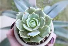 露娜莲是景天科拟石莲花属的多肉植物,由丽娜莲和静夜杂交而来。培育者为美国加利福尼亚州的育种师Dick Wright。灰绿色的叶片排列紧密,轮廓精致优雅,在阳光充足的环境下会呈现出优雅的藕荷色,…全部>>
