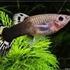 孔雀鱼,是鳉形目花鳉科花鳉属鱼类。孔雀鱼体形修长,其形态变化主要在尾鳍,常见的尾鳍形态有圆尾、尖尾、铲尾等。雌、雄鱼差别明显,雄鱼的大小只有雌鱼的一半左右,雄鱼体色丰富多彩,尾部形状千姿百态。…全部>>