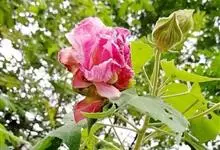 木芙蓉,锦葵科木槿属落叶灌木或小乔木。小枝上有细绒毛;叶片为卵状心形,托叶为披针形,常早落;花单生,花萼为钟形,花冠初为白色或淡红色,后逐渐变为深红色;果实为扁球形,有淡黄色的毛附着。花期8到10月。…全部>>