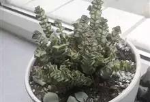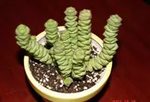 星乙女景天科,青锁龙属多年生肉质草本,植株呈亚灌木状,具细小的分枝,茎肉质,以后稍木质化,肉质叶灰绿至浅绿色,交互对生,卵圆状三角形,无叶柄, 基部连在一起,幼叶上下叠生,成叶上下有少许间隔。…全部>>