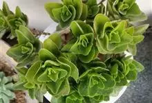 仙女之舞是景天科、伽蓝菜属植物。常绿肉质灌木,株高可达2-3米。幼株茎上有毛。叶有柄;单叶对生,阔卵状三角形,肉质;新叶开展,老叶正面凹、背面圆凸,缘具稀锯齿,橄榄绿色至灰绿色,被稠密的灰白色毛。…全部>>