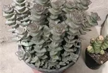 星乙女景天科,青锁龙属多年生肉质草本,植株呈亚灌木状,具细小的分枝,茎肉质,以后稍木质化,肉质叶灰绿至浅绿色,交互对生,卵圆状三角形,无叶柄, 基部连在一起,幼叶上下叠生,成叶上下有少许间隔。…全部>>