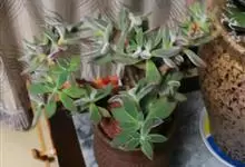 锦晃星是景天科、石莲花属多肉植物。多年生小灌木状多浆植物,灰绿色卵状倒披针形肥厚肉质叶轮状互生,全缘,椭圆尖头,长3-4厘米,宽2-2.5厘米,厚约1厘米,玲凉季节阳光下,叶端及上缘呈红色。…全部>>