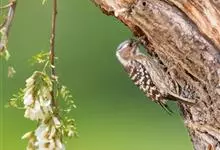 斑姬啄木鸟是鴷形目啄木鸟科姬啄木鸟属鸟类,又叫姬啄木鸟、小啄木鸟。体长9-10厘米。嘴尖而略粗壮,灰黑色;额棕色,向颈后逐渐过渡至橄榄绿色;眉纹白色,过眼纹黑褐色,其下有一白纹,…全部>>