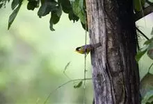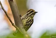 斑姬啄木鸟是鴷形目啄木鸟科姬啄木鸟属鸟类,又叫姬啄木鸟、小啄木鸟。体长9-10厘米。嘴尖而略粗壮,灰黑色;额棕色,向颈后逐渐过渡至橄榄绿色;眉纹白色,过眼纹黑褐色,其下有一白纹,…全部>>