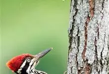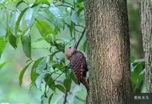 栗啄木鸟:是一种红褐色啄木鸟,体长21厘米。雄性成鸟整个头棕色,但稍淡;眼下有一宽阔血红色纵纹;翕部深棕色,背、腰、尾上覆羽、尾羽也是深棕色;除尾羽外,各羽均具黑色横斑;尾羽则具黑色点斑;翼也是深棕色,…全部>>