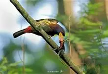 黑眉拟啄木鸟,为须䴕科、拟啄木鸟属的小型鸟类,体长20-25厘米,外形和金喉拟啄木鸟非常相似,但具粗著的黑色眉纹,头侧和耳覆羽以及下喉蓝色而不为银灰色,前颈两侧各有一块鲜红色斑。全部>>