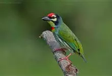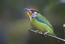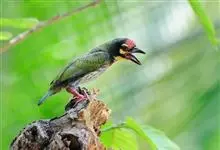 金喉拟啄木鸟,是须鴷科、拟啄木鸟属的鸟类。金喉拟啄木鸟为小型鸟类,体长19-24厘米。额深红色,头顶金黄色,后枕具一大块深红色斑,耳羽和头侧银灰色,上体草绿色,颏和上喉金黄色,下喉淡银灰色,…全部>>