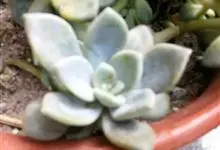 星美人是景天科、厚叶莲属多年生多浆肉质草本植物。植株具直立的短茎。叶12-20片互生,排列呈延长的莲座状,肉质,倒卵形,长2-4厘米,宽2-2.5厘米,厚2厘米,先端平滑钝圆,…全部>>