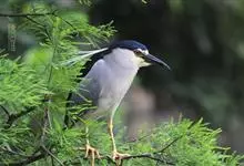 夜鹭是中型涉禽,体长46-60厘米。体较粗胖,颈较短;嘴尖细,微向下曲,黑色;胫裸出部分较少,脚和趾黄色;头顶至背黑绿色而具金属光泽;上体余部灰色;下体白色;枕部披有2-3枚长带状白色饰羽,下垂至背上,…全部>>