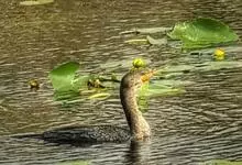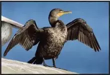 普通鸬鹚是属于鲣鸟目鸬鹚科鸬鹚属鸟类,又名水老鸦、鱼鹰、乌鬼、黑鱼郎等。体长720—900毫米,雌雄同型。通体黑色,有绿褐色金属光泽;喙厚重,喙基和喉囊橙黄色,脸颊及喉白色;夏羽颈及头饰具白色丝状羽,…全部>>
