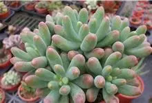 春萌 ——景天科景天属多肉植物。有一说法是凝脂莲和松之绿的杂交后代,继承了其母本凝脂莲的香气。春萌属于矮性肉质灌木,叶尖幼圆,如女孩的指尖,非常可爱、萌动,叶绿色,绿中微微泛黄,光照充足时叶尖会发红,…全部>>