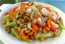 西芹炒腰果是一道由西芹,熟腰果,胡萝卜等做成的美食。全部>>