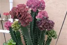 彩春峰是大戟科大戟属肉质植物,彩春峰的肉质茎依品种的不同有暗红色、乳白、淡黄及镶边、斑纹等复色。彩春峰的性状很不稳定,栽培中经常会发生色彩的变异,如暗紫红色肉质茎会长出白色黄色斑块等。…全部>>
