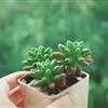 春萌 ——景天科景天属多肉植物。有一说法是凝脂莲和松之绿的杂交后代,继承了其母本凝脂莲的香气。春萌属于矮性肉质灌木,叶尖幼圆,如女孩的指尖,非常可爱、萌动,叶绿色,绿中微微泛黄,光照充足时叶尖会发红,…全部>>