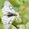 冰清绢蝶:是绢蝶科、绢蝶属的一种蝴蝶。翅展60-70毫米。翅白色,翅脉灰黑褐色。前翅中室内和中室端各有1个隐显的灰色横斑;亚外缘带与外缘带隐约可见,灰色。后翅内缘有1条纵的宽黑带。翅反面似正面。…全部>>
