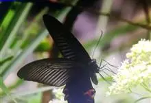 蓝凤蝶,Papilio protenor Cramer,凤蝶科凤蝶属的一种昆虫。翅展95~120mm。翅黑色,有靛蓝色天鹅绒光泽。雄蝶后翅正面前缘有黄白色斑纹,…全部>>