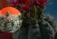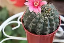 绯花玉 Speg.)是仙人掌科、裸萼球属多肉植物,植株呈扁球形,表皮墨绿色,刺针状,每个刺座有5枚灰色周刺,花生于球体顶端,夏季开花,花色有白、粉红、深红等。果实纺锤形,深灰绿色,种子黑色。…全部>>