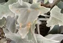 仙女之舞是景天科、伽蓝菜属植物。常绿肉质灌木,株高可达2-3米。幼株茎上有毛。叶有柄;单叶对生,阔卵状三角形,肉质;新叶开展,老叶正面凹、背面圆凸,缘具稀锯齿,橄榄绿色至灰绿色,被稠密的灰白色毛。…全部>>