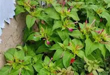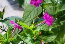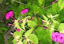 即紫茉莉,英文名:Four-o'clock,Marvel of Peru,为紫茉莉科、紫茉莉属多年生草本植物,一年生栽培。株高50~80cm。根粗壮,茎多分枝而散生。叶对生,卵形或心脏形。花数朵簇生…全部>>
