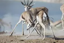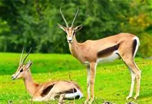 阿拉伯沙瞪羚:是偶蹄目、牛科、瞪羚属的食草动物。头尾长97厘米,身高约55-60厘米。雄性体重约为22千克,雌性性体重为18千克。雌雄都有犄角,雄性长达27厘米,雌性15厘米。体型较小。腿细长,…全部>>