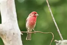 普通朱雀是雀形目雀科朱雀属鸟类,又名红朱雀、马料、青麻料。雄鸟上体红色,下体淡红色;头部、喉部、胸部及腰部亮红色;背部褐色染红色;两翼及尾黑褐色,羽缘染红色。雌鸟上体橄榄褐色,下体近白色,…全部>>