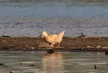 斑头秋沙鸭,是鸭科、斑头秋沙鸭属鸟类。雄鸟眼先和眼周黑色,成块斑状;头部其余部分全为白色。颈白色;背黑色,上背最前处的白羽具有黑端,相连而成两条半圆环狭带。下体白色,体侧羽毛具黑褐色波状细纹。…全部>>