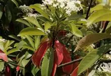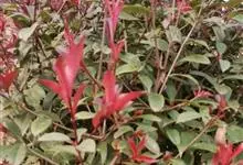 红叶石楠 是蔷薇科,石楠属杂交种,为常绿小乔木或灌木,乔木高可达5米、灌木高可达2米。叶片革质,长圆形至倒卵状、披针形,叶端渐尖,叶基楔形,叶缘有带腺的锯齿,花多而密,复伞房花序,花白色,梨果黄红色,…全部>>