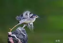 夜鹭是中型涉禽,体长46-60厘米。体较粗胖,颈较短;嘴尖细,微向下曲,黑色;胫裸出部分较少,脚和趾黄色;头顶至背黑绿色而具金属光泽;上体余部灰色;下体白色;枕部披有2-3枚长带状白色饰羽,下垂至背上,…全部>>