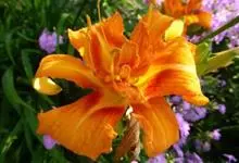 重瓣萱草 L. var. kwanso Regel),百合科萱草属植物。根近肉质,中下部有纺锤状膨大;花桔黄色,花被裂片多数,雌雄蕊发育不全。花被管较粗短,长2-3厘米;内花被裂片宽2-3厘米。…全部>>