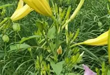 黄花菜 别名金针菜、柠檬萱草等,是阿福花科萱草属的多年生宿根性草本植物。根近肉质,中下部常有纺锤状膨大;叶7~20枚,长50~130cm,宽6~25mm;花葶长短不一,花梗较短,花多朵,…全部>>