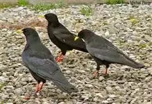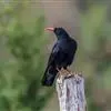 红嘴山鸦,是脊索动物门鸟纲雀形目鸦科鸟类。红嘴山鸦的成鸟通体羽毛纯黑色具有蓝色金属光泽,翼和尾泛有蓝绿色金属光泽;虹膜暗褐色,喙较为尖细,并且呈镰状下弯,喙和脚朱红色。…全部>>