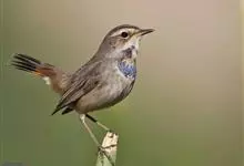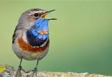 蓝点颏亦称“蓝喉歌鸲”,通称蓝靛颏儿。身体大小和麻雀相似,体长12-13厘米,体重17-18克。头部、上体主要为土褐色。眉纹白色。尾羽黑褐色,基部栗红色。颏部、喉部辉蓝色,下面有黑色横纹。下体白色。…全部>>