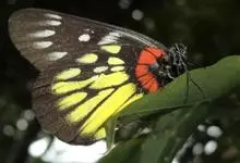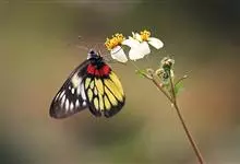 报喜斑粉蝶是粉蝶科斑粉蝶属的一种动物,又名红肩粉蝶、藤粉蝶等。幼虫群集性很强,从同一卵块孵化出的幼虫,幼龄期全部群集在一起取食,高龄幼虫常分散成小群。幼虫群集危害叶片,造成秃枝,严重者可将树吃成光杆,…全部>>
