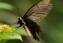 玉斑凤蝶Papilio helenus 别名白纹凤蝶,是凤蝶科凤蝶属美凤蝶亚属大型种类。雌雄同型;体翅皆黑色,后翅正面中室外有3个并列的白色斑,亚外缘有1列模糊的新月形红色斑,…全部>>