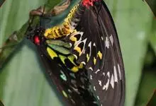 金裳凤蝶是凤蝶科、裳凤蝶属的动物。金裳凤蝶身体呈黑色,头、颈和胸侧有红毛,腹部有黑黄两色相间条纹,雄蝶前翅黑色,具黑天鹅绒光泽,各脉两侧灰白色,后翅金黄色,各室外缘有等腰三角形黑斑1枚,斑内侧有晕,…全部>>