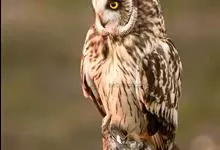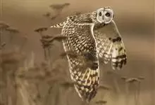 短耳鸮又名小耳木兔、田猫王、夜猫子等,是鸮形目鸱鸮科耳鸮属中小型猛禽动物。成鸟面盘显著,眼周黑色;眼先及内侧眉纹灰白色,面盘余部棕黄色杂以黑色细羽干纹;耳簇羽短小而几乎不外露,…全部>>