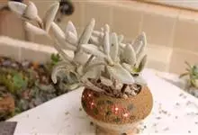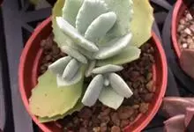 福兔耳是景天科伽蓝菜属的多肉植物,野外分布于非洲马达加斯加中部。植株叶片对生,长梭型,整个叶片及茎干密布白色绒毛。花期较长。喜阳光充足的环境,夏季要适当遮荫,不能过于荫蔽。喜温暖,…全部>>