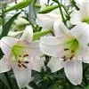 麝香百合:在中国台湾亦称铁炮百合。鳞茎球形或近球形,高2.5-5厘米;鳞片白色。茎高45-90厘米,绿色,基部为淡红色。叶散生,披针形或矩圆状披针形,两面无毛。花单生或2-3朵;花喇叭形,白色,筒外…全部>>